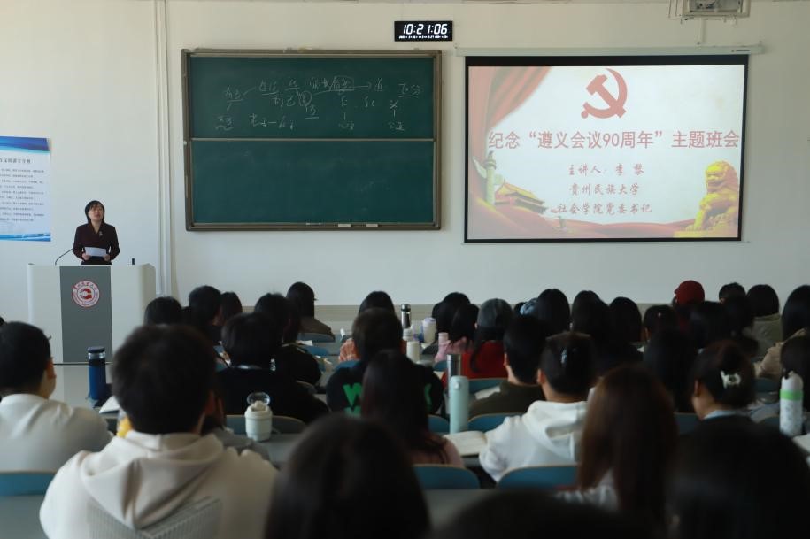 2025-03-28 为认真学习贯彻习近平新时代中国特色社会主义思想和党的二十大、二十届三中全会精神,不断深化大学生的爱国主义、集体主义、社会主义教育,培养担当民族复兴大任的时代新人,学院于2025年3月26日召开了纪念“遵义会议90周年”主题班会。学院党委书记李黎… -