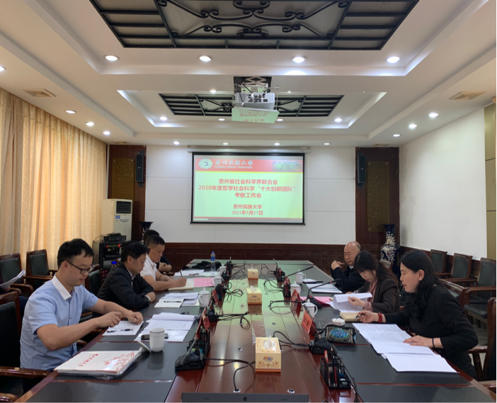 2021-05-17贵州省社科联领导对 无码流出 “创新团队”申报工作进行考察 2021年5月17日下午,贵州省社会科学界联合会2020年度哲学社会科学“十大创新团队”考察工作会在无码流出 花溪校区行政楼第一会议室举行。省社科联研究室一级调研员杨俊、省社科联研究室主任刘琛、省… -