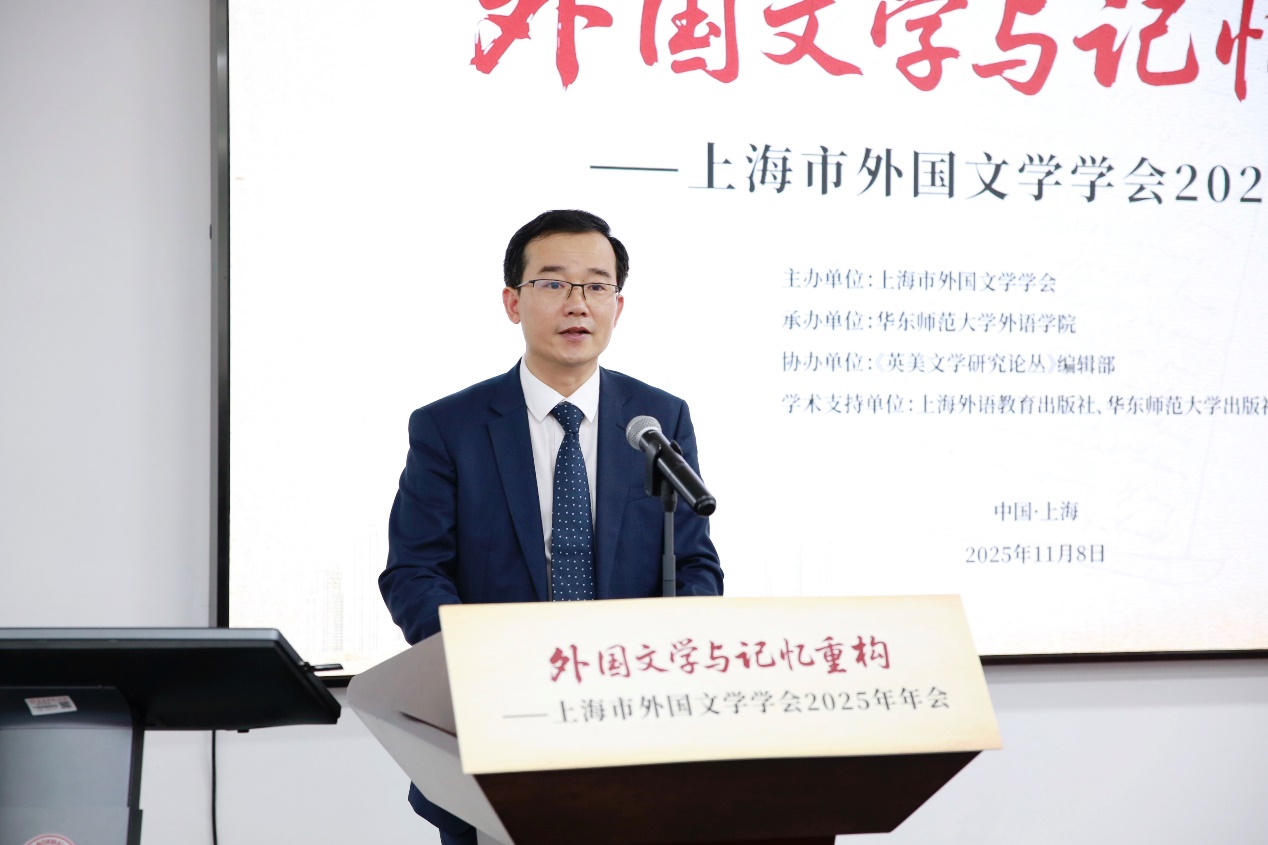 2025年11月8日,“外国文学与记忆重构”——上海市外国文学学会2025年年会在华东师范大学外语学院召开。本次年会为上海市社联第十九届(2025)学会学术活动月专项活动之一。会议由上海市外国文学学会主办,华东师范大学外语学院承办,《英美文学研究论丛》编辑部协办,上海外语教育出版社、华东师范大学出版社提供学术支持。本次年会旨在探讨外国文学对重要历史事件的再现和对人类重要集体记忆的重构,思考文学在记忆建构中的功能与价值,为促进中国外国文学研究在人工智能的创新转型发展,推动人类文明交流互鉴、构建人类命运共同体贡献外国文学研究者的智慧和力量。来自上海市及兄弟省市79所高校的近180位专家、学者、教师及硕博士研究生共聚一堂,围绕会议主题展开研讨。