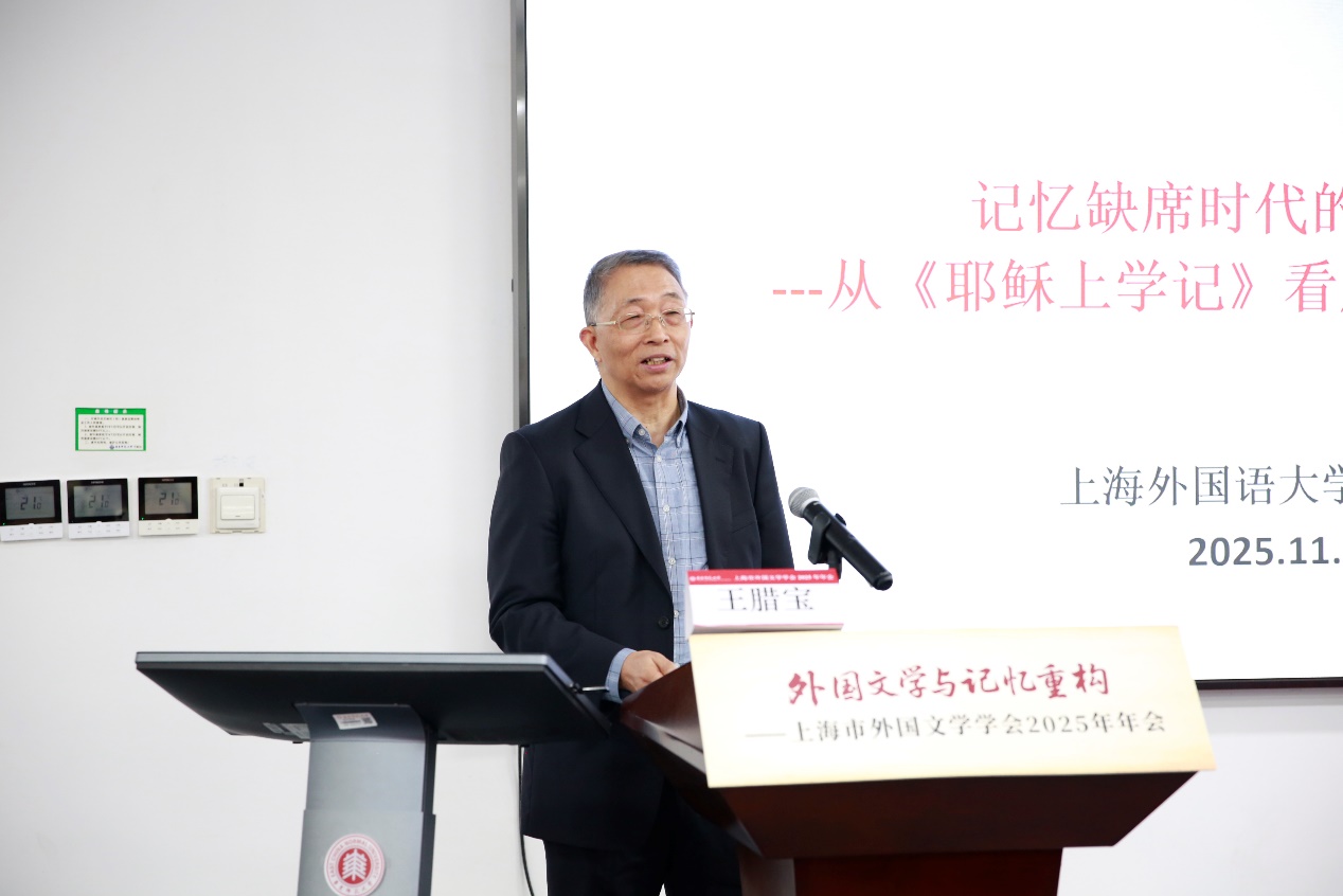 第二阶段的主旨报告由上海财经大学杨国静教授、华东师范大学王改娣教授主持。上海外国语大学王腊宝教授以《记忆缺席时代的难民情感:从<耶稣上学记>看库切的“失败诗学”》为题,剖析了库切作品中难民记忆被压抑的情感困境与社会批判。王教授运用情感认知理论分析这些库切笔下的情感错乱案例,揭示了库切对西方难民接收政策的尖锐批判,并阐释了作家如何以“交互诗学”超越其早期创作中的“失败诗学”,倡导一种基于记忆尊重与情感完整性的伦理立场。
