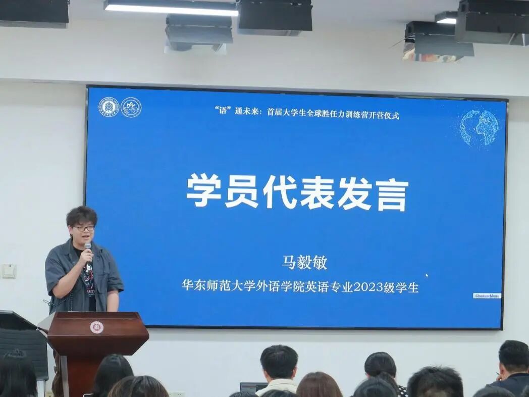 外语学院英语专业2023级学生马毅敏作为学员代表发言,他分享了自己对训练营的期待,“全球胜任力是跨学科融合的‘桥梁’,希望通过这次学习,打破单一专业视角,学会用多维度眼光看待国际事务,为未来参与国际交流做好准备。”真挚的心声,也道出了全体营员的共同目标。