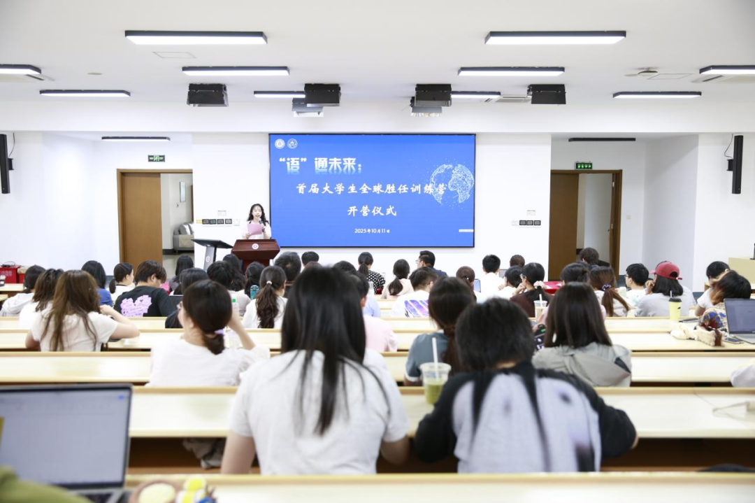 金秋十月,筑梦启航。2025年10月11日,“语”通未来——首届全球胜任力训练营开营仪式在闵行校区外语学院333报告厅顺利举办。华东师范大学外语学院区域与国别研究所所长陈弘教授,党委学生(研究生)工作部主管成一川,外语学院党委副书记、副院长武娟,政治与国际关系学院辅导员、全球胜任力协会指导教师桂骏,外语学院专职辅导员、全球胜任力训练营指导教师陆云鹏与近百名营员共同开启全球胜任力提升之旅。本次活动由外语学院2024级研究生沈陈捷主持。