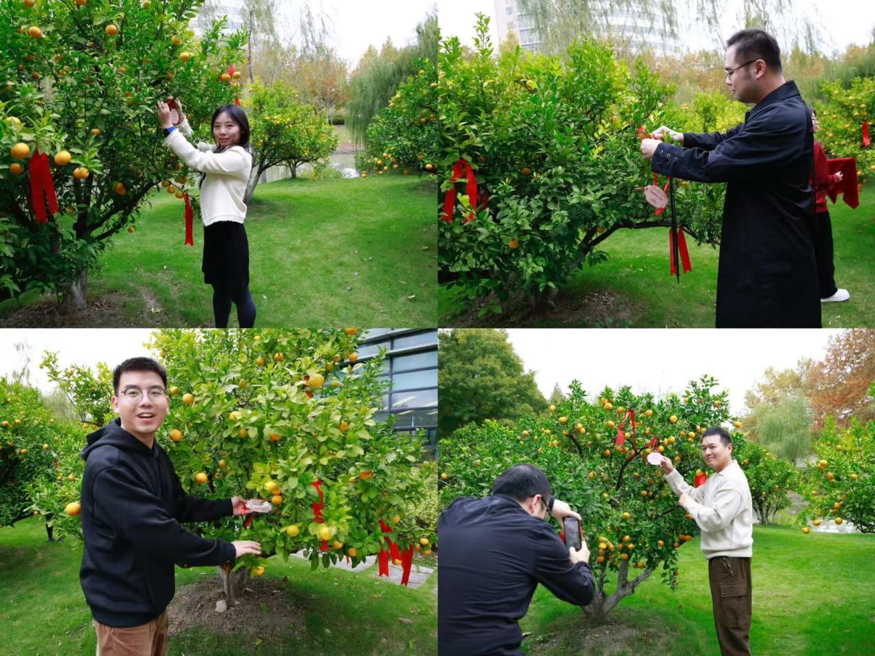 在互动体验环节,到场师生漫步橘园,精心挑选,细心采撷秋实,体验劳动与丰收的乐趣。现场洋溢的满足笑脸,让“橘园”不仅仅是一个文化符号,更成为了一个承载着秋日记忆的特色地标。