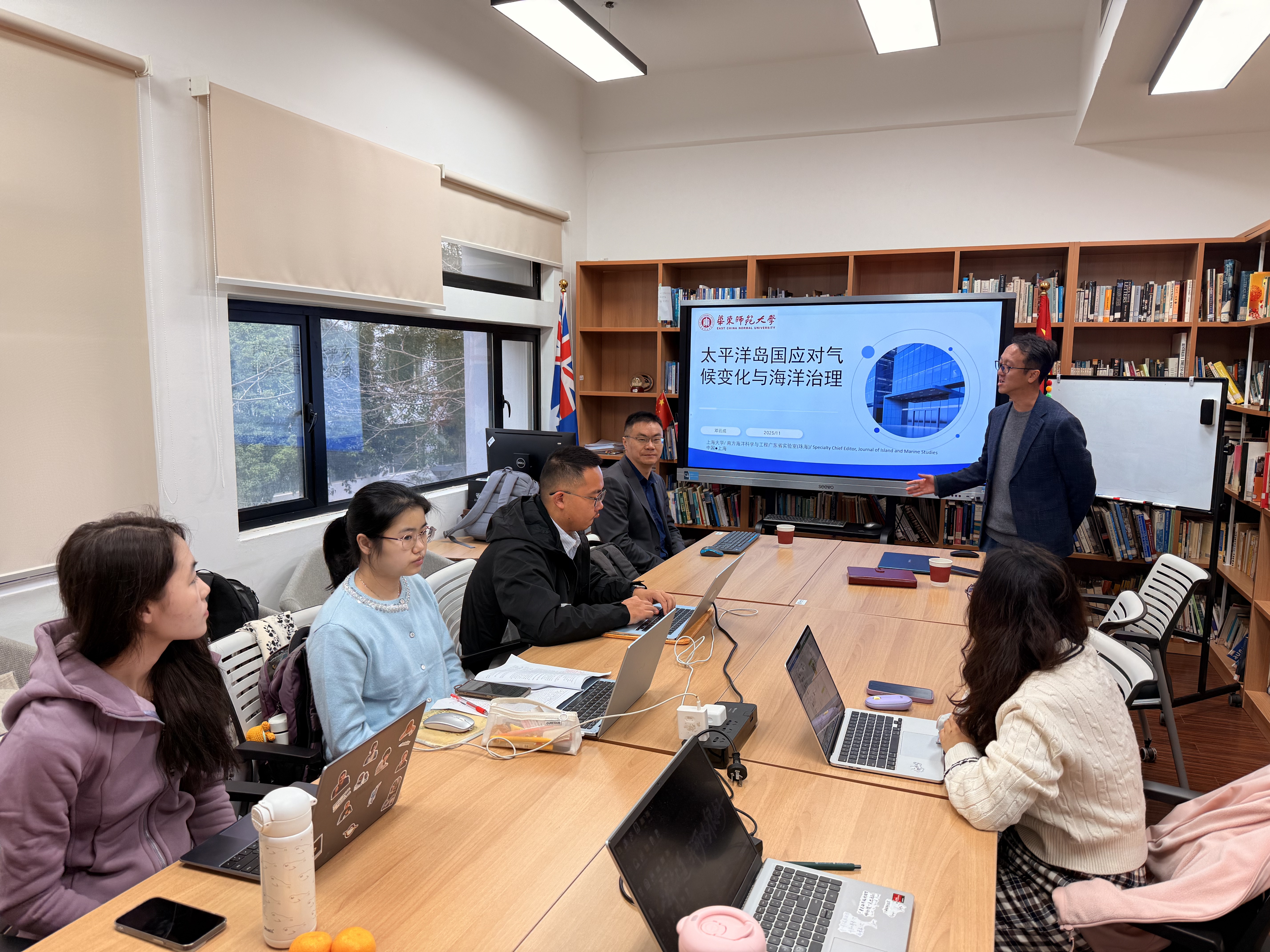 2025年11月17日,应华东师范大学亚洲和太平洋地区研究中心邀请,上海大学法学院副教授邓云成在外语学院218教室为师生带来了一场题为《太平洋岛国重点问题领域:应对气候变化与海洋治理》的讲座。讲座由华东师范大学外语学院国别与区域研究所副所长、华东师范大学亚洲和太平洋地区研究中心执行副主任陈晓晨教授主持。