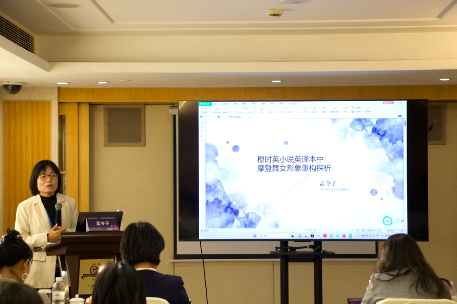 华东师范大学外语学院翻译系孟令子副教授以《穆时英小说英译本中上海摩登舞女形象重构探析》为题,聚焦穆时英小说英译本,探讨其中“摩登舞女”形象的跨文化再现与审美变迁。她指出在翻译《公墓》时,译者有意改写舞女被动形象以印证自身在老上海文化史研究中建构的中国现代性话语。孟令子副教授同时提到,英语世界对穆时英作品的研究已从文学视角转向社会文化史导向,这一转变反映了八九十年代英语世界中国研究从社会史、革命史向大众文化取向城市史的范式变迁。她还指出,译者采用民国小报史料作为研究依据,存在视角偏差问题,因此主张应从海外中国研究视域理解中国新当代文学作品的译介逻辑。